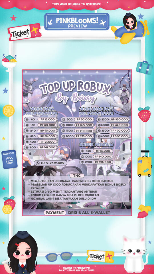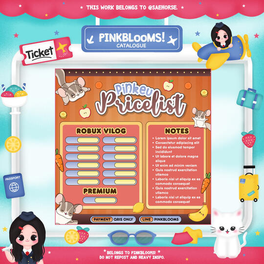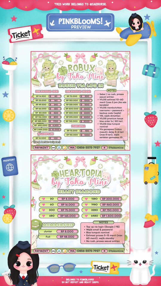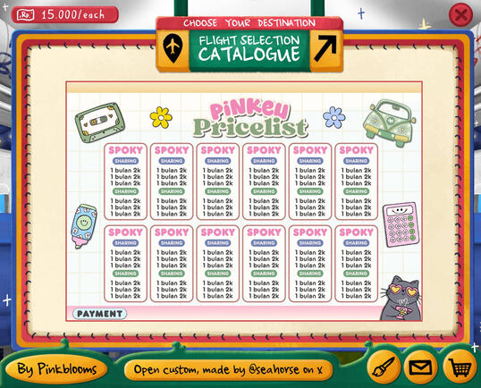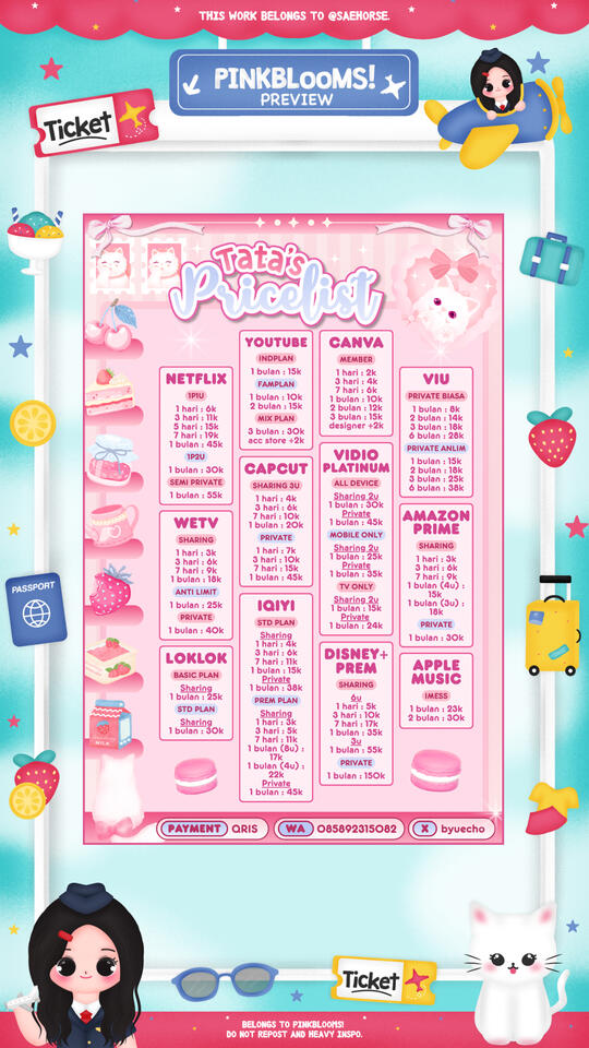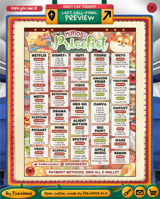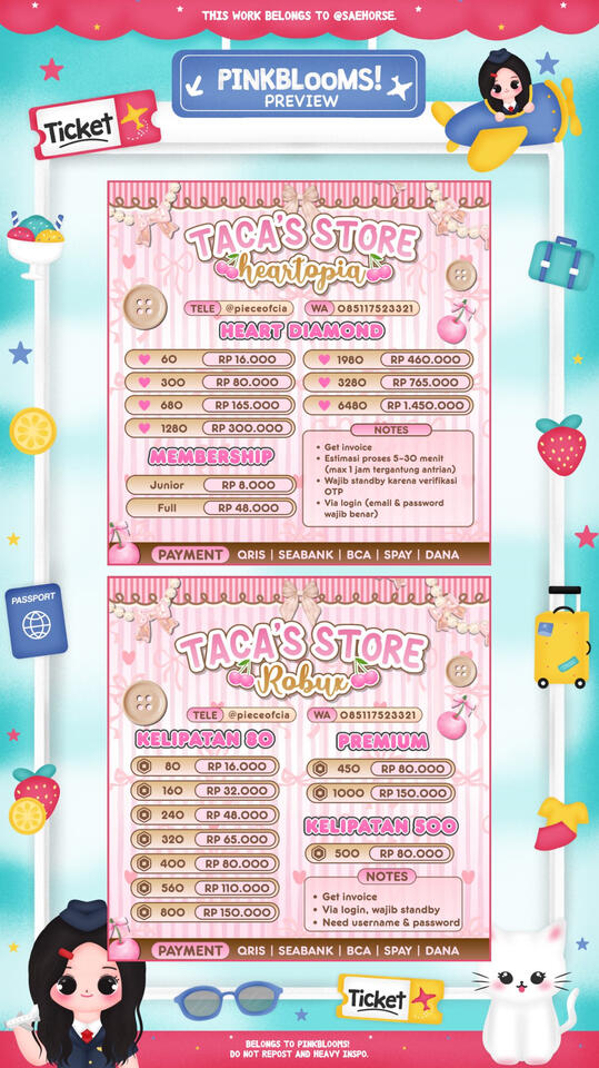 β’ judul pricelist (Pinkeu Store) :