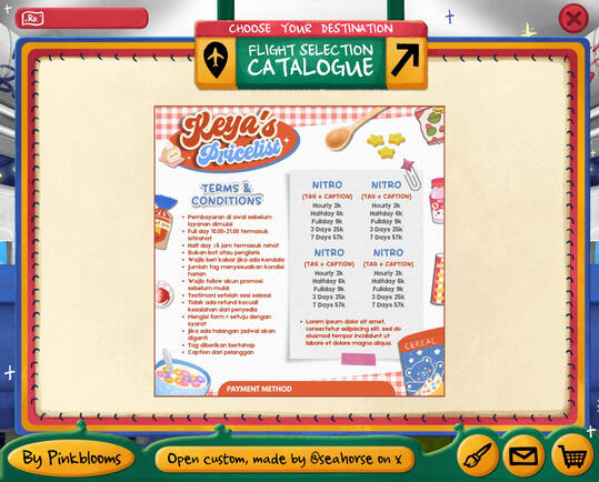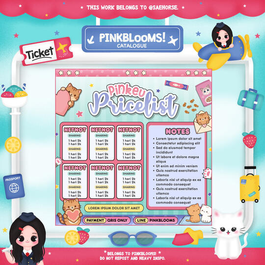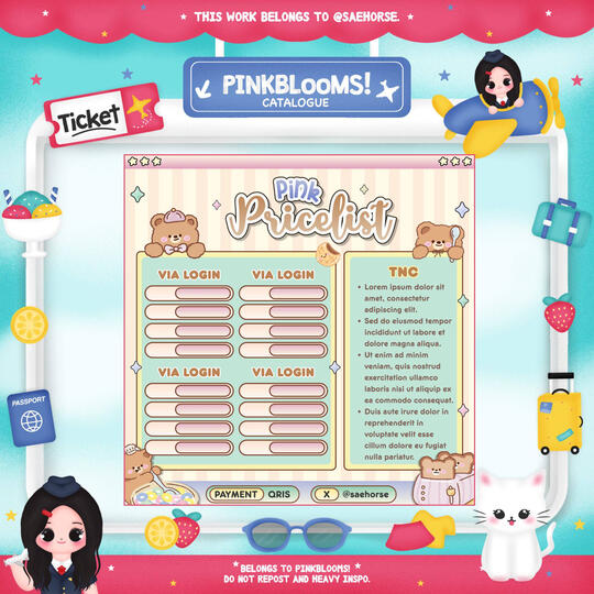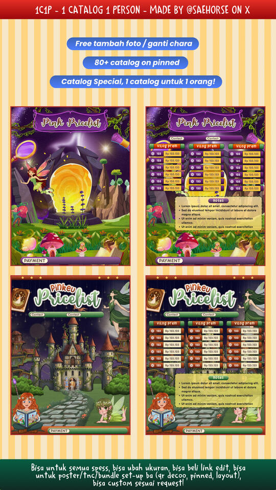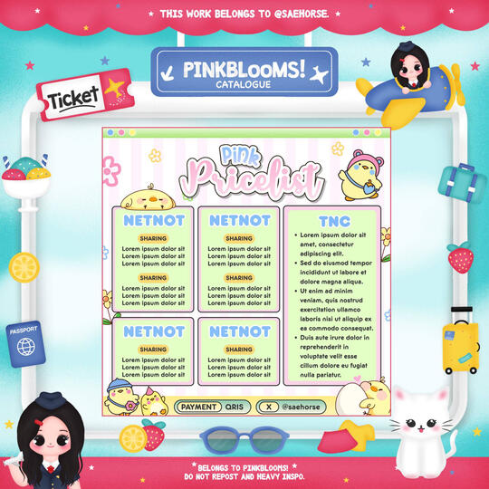 Pembelian link Canva (template PL) hanya memperbolehkan customer mengedit teks seperti harga, kolom, dan contact person. Tidak diperkenankan menambah pricelist atau membuat setup lain (sesuai kesepatan BA edit PL, melanggar = cust wajib membayar denda sesuai TNC)